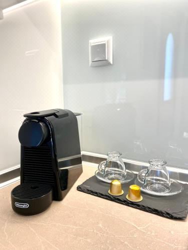 这家空调度假屋配有1间卧室、起居室、带冰箱和咖啡机的设施齐全的厨房以及1间带淋浴设施和免费洗浴用品的浴室。这家度假屋还提供平板电视以及1间带吹风机的浴室。